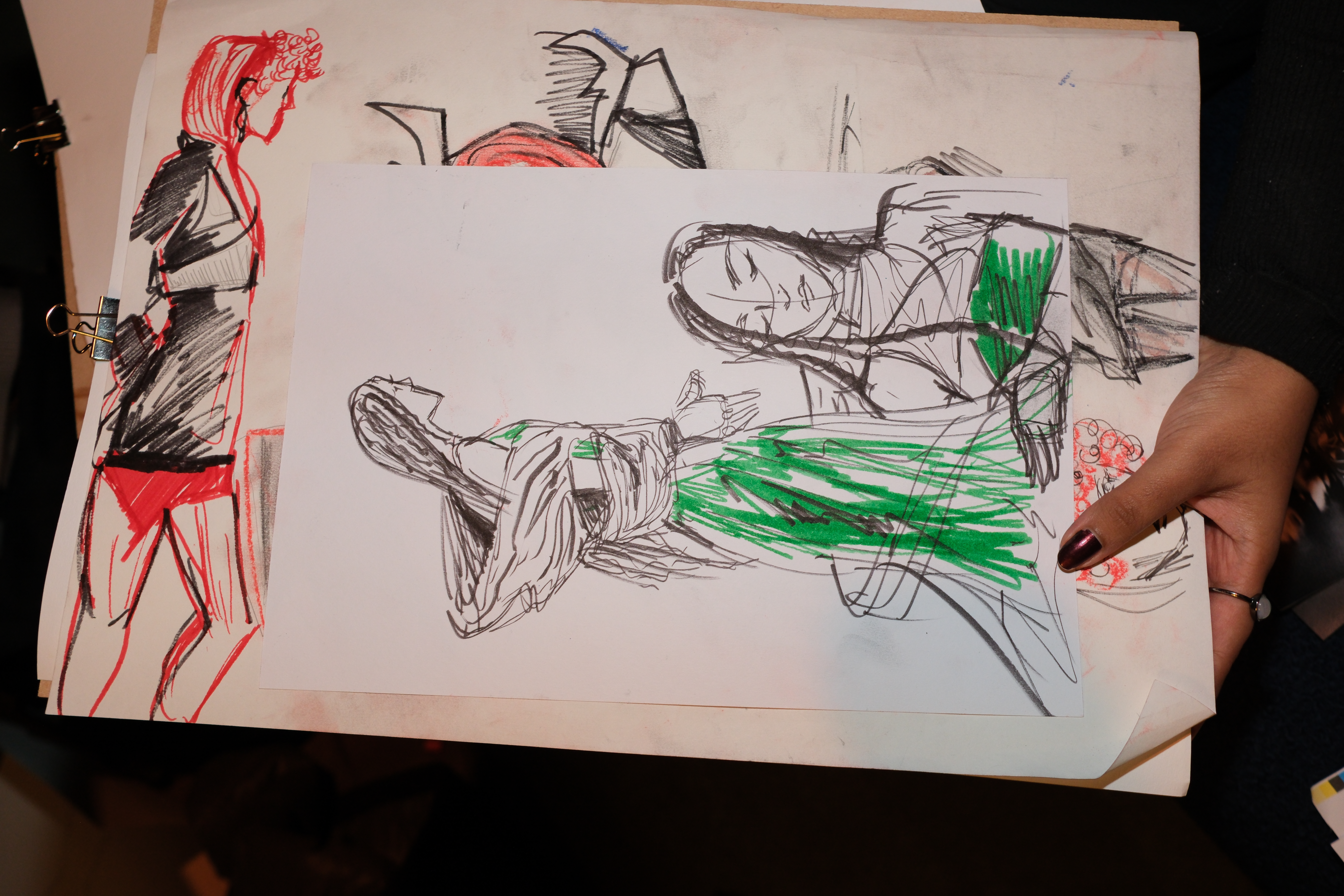 AS MODELS MOVED THROUGH THE SPACE, PAUSING TO POSE AMONG THE AUDIENCE, GUESTS BECAME ACTIVE PARTICIPANTS—CAPTURING THE UNFOLDING COLLECTION THROUGH THEIR OWN LENS. SKETCHING, PHOTOGRAPHING, AND RESPONDING IN REAL-TIME, THE CROWD TURNED THE PRESENTATION INTO A COLLABORATIVE ACT OF CREATION, WHERE EVERY VIEWPOINT CONTRIBUTED TO THE EVOLVING ARTWORK.
